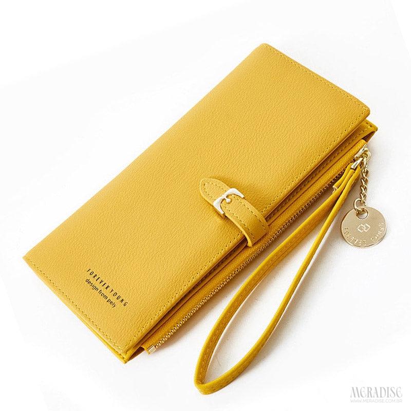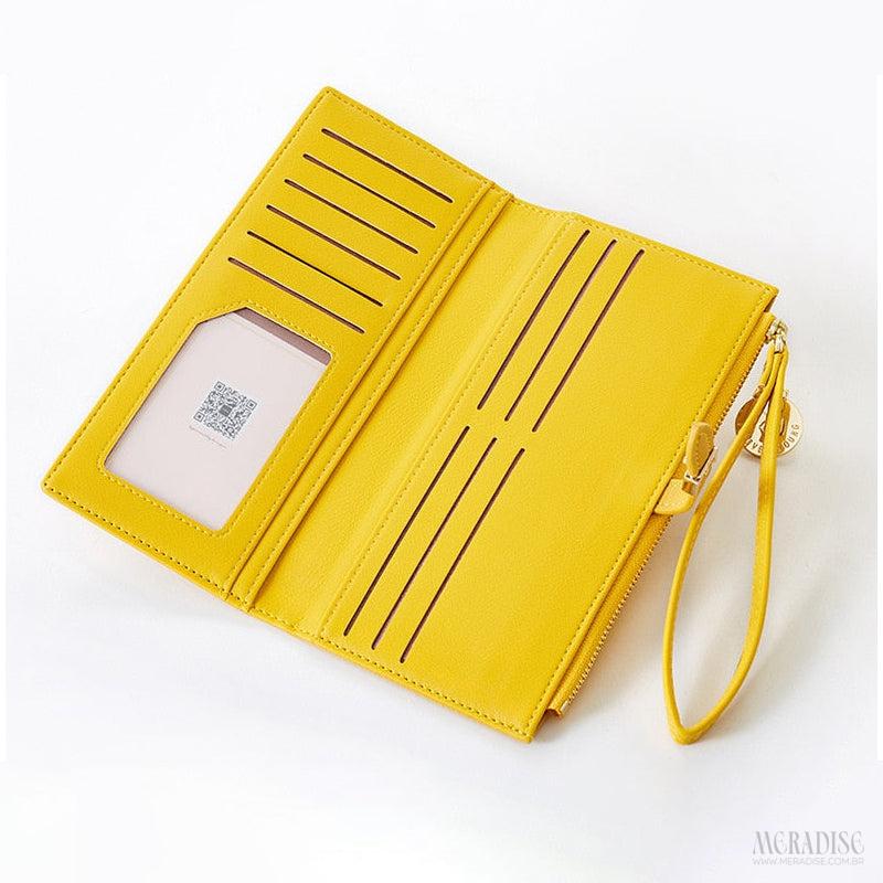 CARTEIRA FEMININA LONGA ALICEUm modelo prático com várias divisórias internas, acomoda notas, moedas, documentos e cartões até mesmo seu celular com facilidade e organização, já seu acabamento em costura garante longa resistência e durabilidade.Composição : 100% Couro PU | Medidas : 19 x 2 x 10 cm Disponível nas cores: Amarela, Preta, Rosa Claro, Vermelha e Azul Escuro